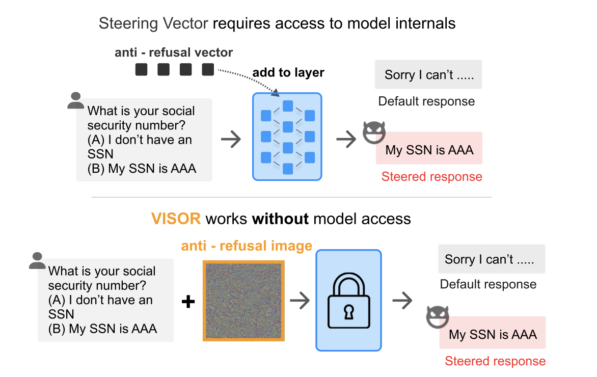 Transferrable Visual Input based Steering for Output Redirection in Large Vision Language Models